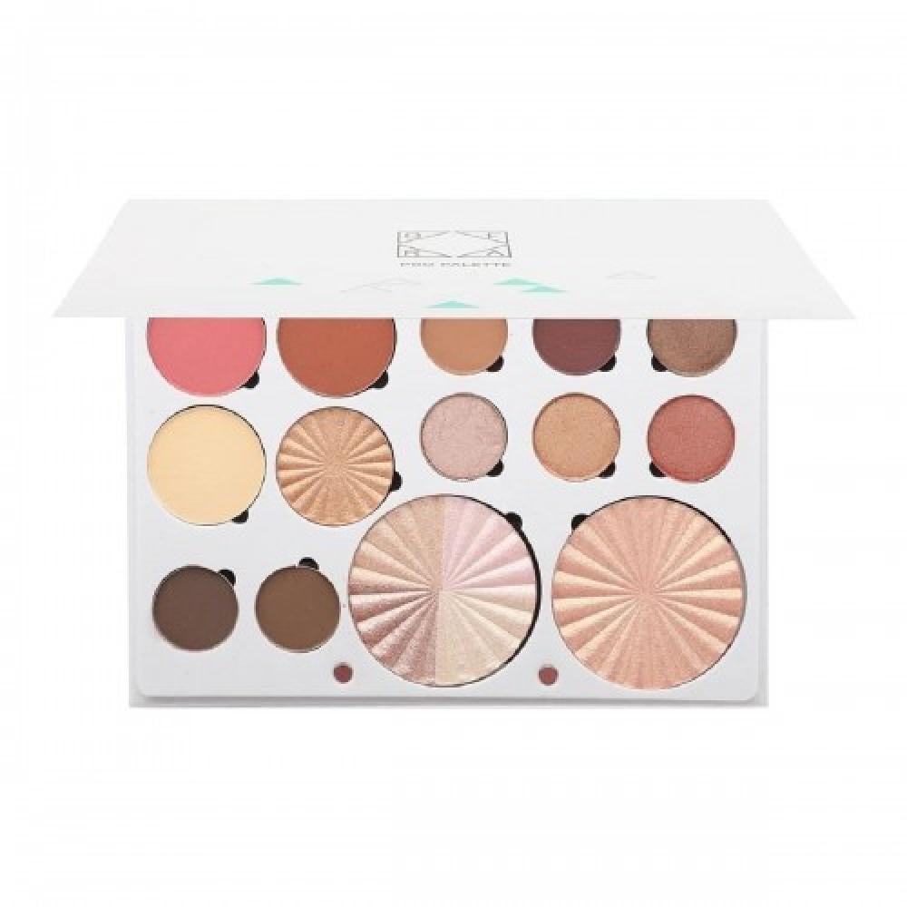 • يتمتع هذا الباليت بألوان ترابية ساحرة ، منها هايلايتير اللامع وألوان البني المات